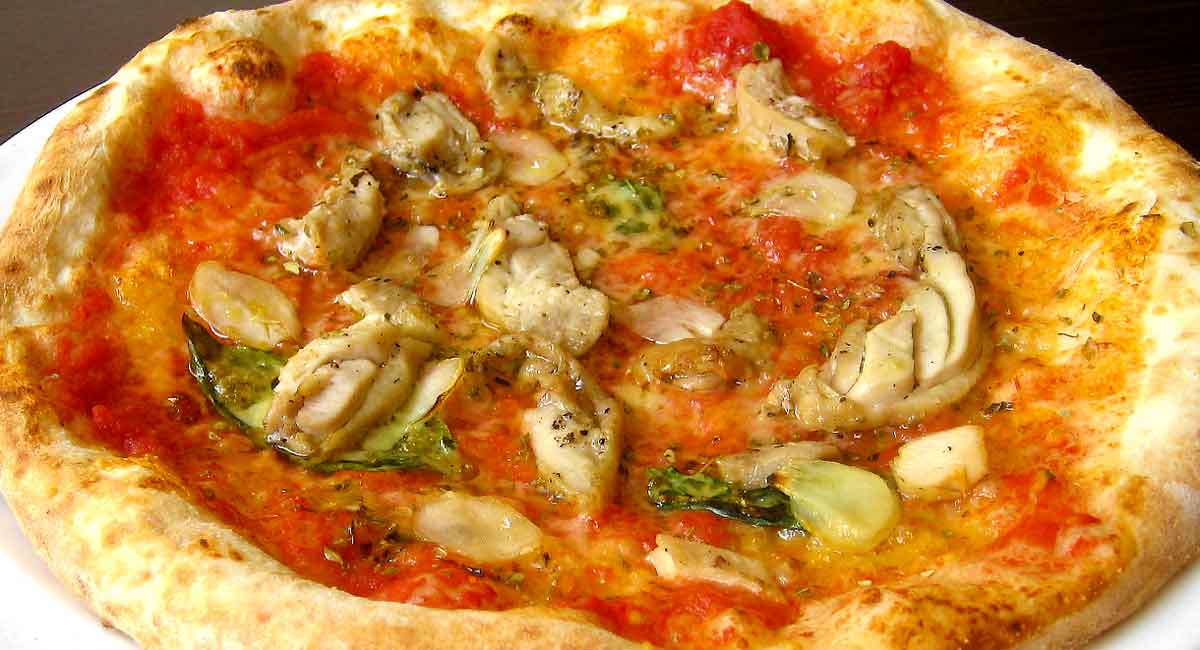 スモークチキン・オレガノ・バジル・ニンニク・パルミジャーノのトマトソースピッツァ