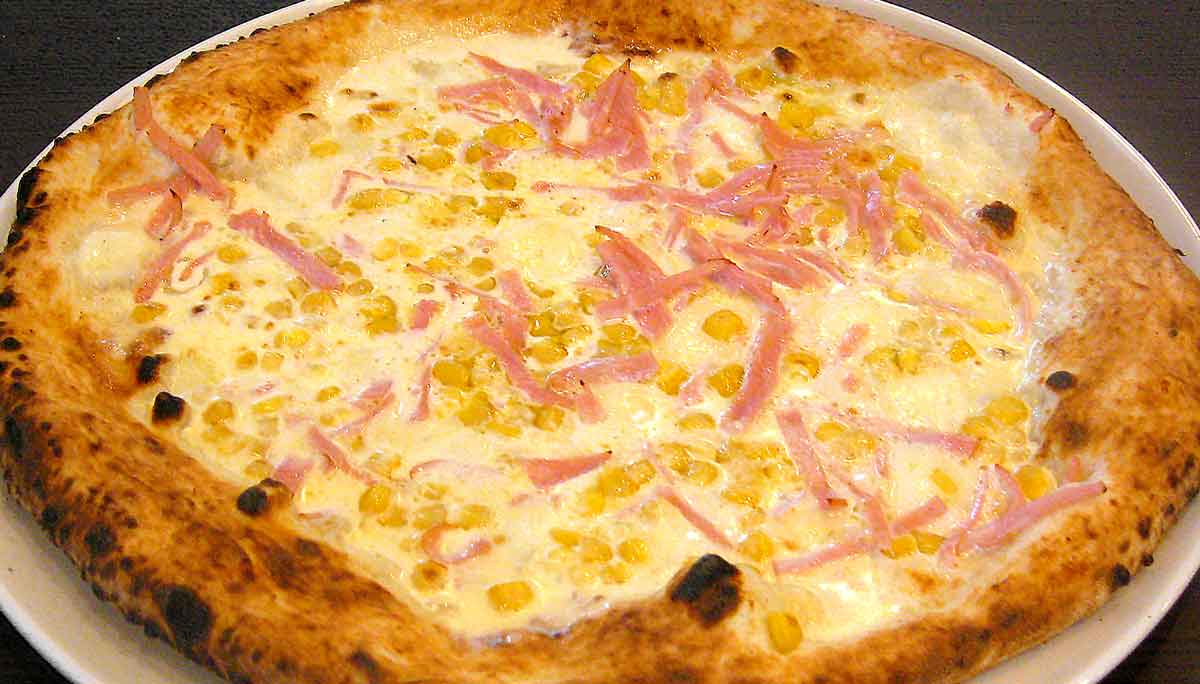 ハム・コーン・クリーム・モッツァレラのピッツァ